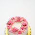 The final step was to use a leaf tip to pipe green leaves all around the flowers - this fills in the gaps in between the flowers (and also hides the ring of frosting that you are placing the flowers on and around).