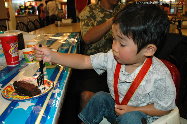 Then that weekend, we had a small party at Chuck E Cheese, and I made my first ice cream cake ever. It was a layer of chocolate cake, with a layer of homemade mint oreo ice cream ...