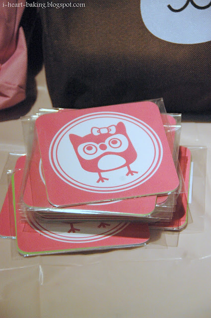 My friend Diana has a daughter named Naomi who loves owls.  So when she asked me to make the cake for Naomi's 4th birthday party, I had to make an owl cake!  Luckily for me, her husband designed an owl logo specifically for the birthday party (he also designs all the cards at their own stationery business, bumble ink!), so I used his logo as inspiration for the cake!