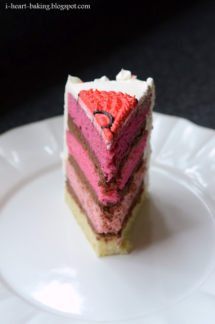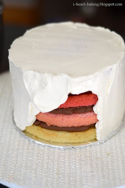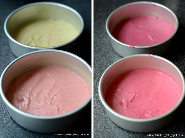 I wanted the cake portion to be pink, so I made an ombre vanilla cake with varying shades of pink.