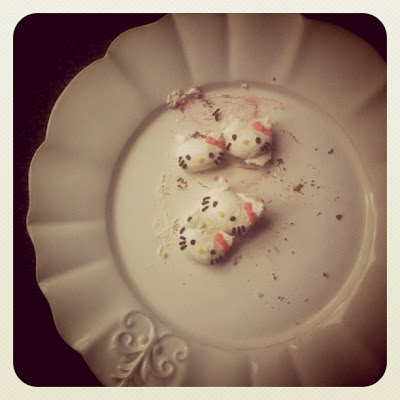 In the end, I just couldn't bear to eat the Hello Kittys.  So I saved them for my kids to eat - they had no problems digging right in!