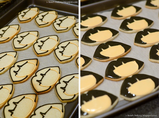For the "O" cookies, I was disappointed that the cookie cutter in my set turned out to just be a circle! I was surprised there was no inset circle to complete the "O". So I just piped my own purple "O" outline, and filled it in with runny purple royal icing.
