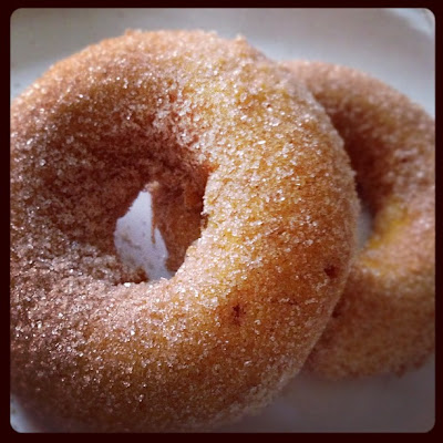 One thing to note is that these donuts are best eaten the day they are made. I ate some the next day and they were quite soggy. But it wasn't anything that a quick dip in cinnamon sugar couldn't fix! :) Perhaps next time I'll store them unadorned and then dip them in cinnamon sugar until right before serving.