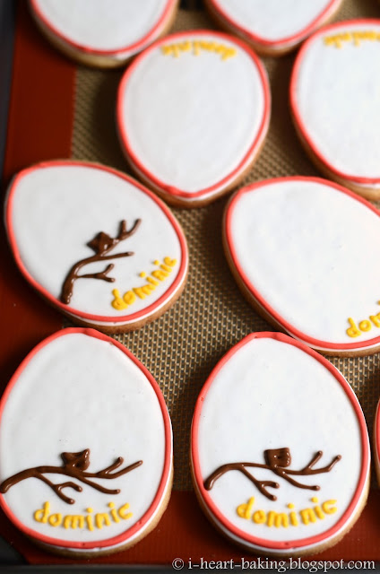 Remember these baby face cookies that I made for a baby shower several months ago for my friend Stephanie, who was hosting a baby shower for her twin sister Selena? Well Selena's adorable baby boy was welcomed into the world last April, and when he turned 1 month she asked me to make decorated egg cookies for his Red Egg and Ginger Party!