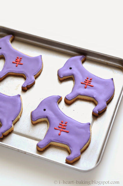 Once the cookies had completely dried, I wrapped them individually in cellophane favor bags, and tied them closed with raffia.