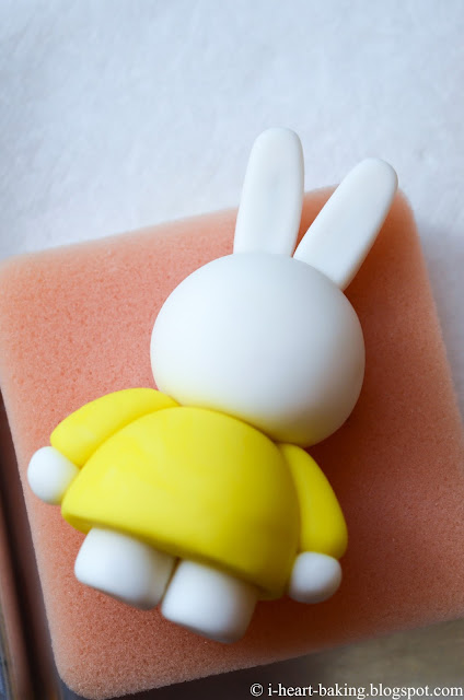 I began making the fondant miffy a couple of weeks before the party, so that it would have time to dry before going on top of the cake. I used
