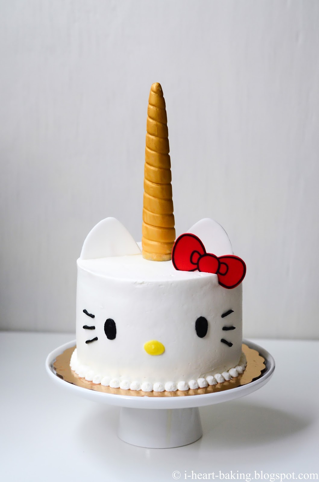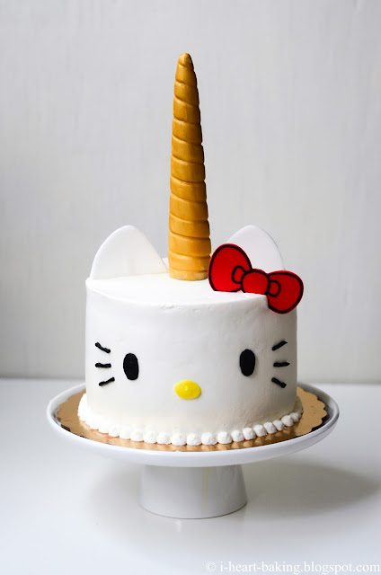 For the past several years, when it's my birthday I make myself a cake! And it's always a Hello Kitty cake of some shape or form! This year I was inspired by unicorns, thanks to my daughter Melodie. :) She has a fascination and love of unicorns, and it has rekindled my childhood love of unicorns as well! For her birthday last year I made her a unicorn cake, complete with handmade fondant unicorn horn, and so when my birthday came around I thought it would be fun to give Hello Kitty with a unicorn horn too!